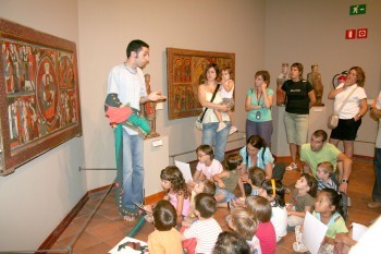 D'altra banda, tots els diumenges a 2/4 d11 del matí el MEV organitza també la visita Descobriu el món medieval. Es tracta duna altra activitat participativa amb la família a les colleccions de romànic i gòtic. De la mà dun educador lobjectiu és transportar els participants al passat medieval a través de diversos objectes i materials. Lactivitat està dirigida a nens i nenes a partir de 5 anys .