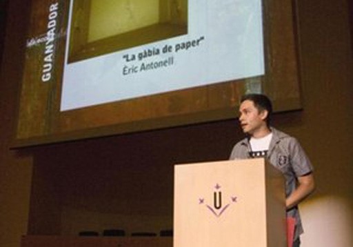 Antonell en una imatge que recull al seu compte de Vimeo, rebent un premi per un dels seus treballs