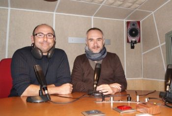 Els dos actors als estudis de Ràdio Manlleu en una imatge d'arxiu