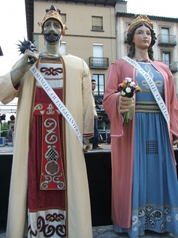 La colla gegantera de Manlleu va estrenar ahir dimecres els nous vestits de la parella de gegants més antiga de la població. El nou vestuari ha estat construït per Ramona Valls. La indumentària també ha permès reduir una mica el seu pes perquè la roba que portaven actualment els feia especialment pesats per transportar.