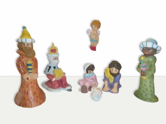 El pessebre de la Pilarín està format per set peces: l'àngel, la Mare de Déu, Sant Josep, el nen Jesús i els tres reis