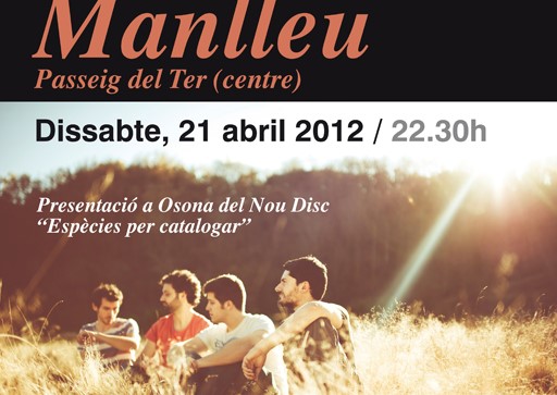 Els Amics de les Arts presenten aquest dissabte a Osona el seu nou disc "Espècies per catalogar". Serà en un concert a Manlleu, que per no solapar l'horari amb el partit de lliga Barça-Madrid es retarda mitja hora, i començarà a les 11 de la nit. Lactuació es farà al Passeig del Ter, a la zona centre, just davant del Pavelló de La Salle.