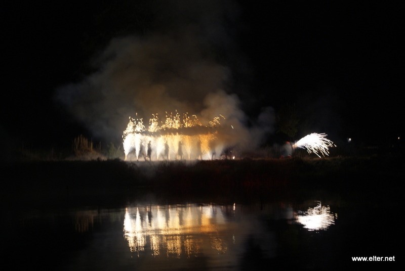 La joia no trigaria gaire a ser robada per uns joves de Manlleu que acabarien provocant la fúria del Serpent, una fúria en forma de llum, foc i espurnes. En un instant la Devesa sha omplert de color, gràcies a unes estructures col·locades dins mateix de laigua que llençaven uns coets que tenyien el riu de vermell. El Serpent ha perseguit els joves cap al Museu Industrial del Ter on hi havia el poble de Manlleu, tots ells aliens al perill imminent. La fugida des de l'avinguda Torrent de la Borina cap al carrer de la Cavalleria la precedien les autoritats eclesiàstiques, l'alcalde, els soldats i el poble, a més duna taverna i una fruiteria mòbils.
