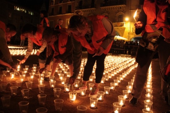 Uns 130 voluntaris han il·luminat els gairebé vuit milers d'espelmes que formaven l'estelada