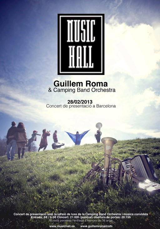Guillem Roma segueix girant per terres catalanes presentant el seu segon treball discogràfic, titulat "Oxitocina". El jove music manlleuenc actuarà aquest dijous 28 de febrer a una de les sales amb més encant de la ciutat comtal, el Music Hall de Barcelona. Per Roma es tracta dun concert molt especial ja que és el concert més a lengròs que comptaran. De fet aquest serà el primer concert on podrem veure a Roma i la Camping Band Orchestra al complert. Guillem Roma es mostra molt il·lusionat amb aquest concert ja que com afirma el mateix artista "poder comptar, per aquest concert, amb tots els components que han creat el disc és molt especial".
