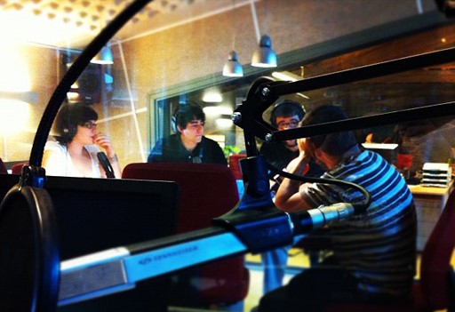 Una imatge del programa L'avió de paper des dels estudis de Ràdio Manlleu