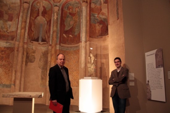 Riba i Sureda amb la Mare de Déu del Nen de Solsona i les pintures murals de l'absis de Sant Martí del Brull