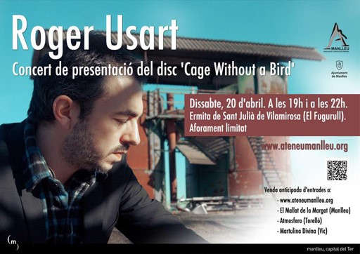 El disc Cage Without a Bird, del manlleuenc Roger Usart, és a la venda des del 9 dabril i ara el manlleuenc el presentarà, dissabte, amb una doble sessió de concerts a lermita del Fugurull, a les 7 i a les 10 del vespre. Roger Usart tenia moltes ganes de presentar el seu disc en solitari a Manlleu i dacord amb lAssociació Pro-Ateneu, es va optar per fer la presentació en un lloc especial com l'ermita de Sant Julià de Vilamirosa. Usart diu que lespai sadiu perfectament amb lestil "tranquil i intimista del disc, i em sembla un lloc fantàstic".