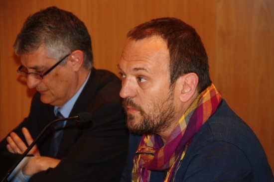El director del Premi Unnim Teatre, Joan Roura i el director d'Acció Social d'Unnim BBVA, Jordi Espona