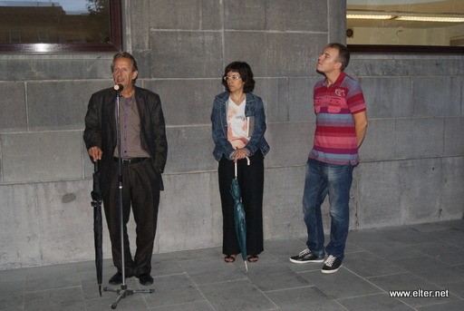 Tot i la pluja va arribar a haver-hi una desena de persones a la presentació i es paraven a mirar-la. Un acte que tot i no ser multitudinari va presentar i explicar lessència d"Espriu a làgora": Donar a conèixer la personalitat de lescriptor, un escriptor que no es va deixar modelar per lèpoca franquista i no va deixar descriure en català.