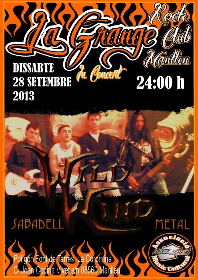 El local La Grange de lentitat manlleuenca Rock House Osona acollirà aquesta nit el concert del grup Wild Wind. La banda de Heavy Metal nascuda a Sabadell lany 2011 portarà a Manlleu una proposta musical enèrgica amb sis temes destudi que disposen de tocs de groove i caràcter americà. El concert començarà a les 12 de la nit.