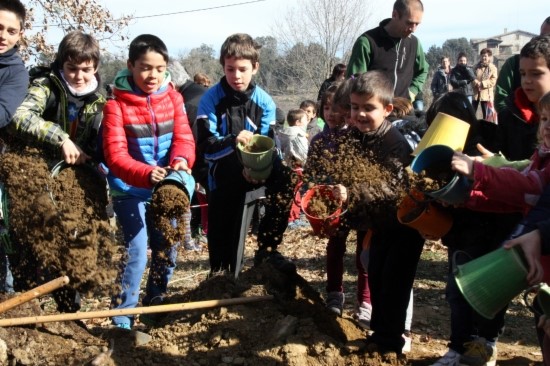 Alumnes en el procés de plantar el plançó a Folgueroles