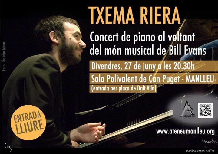LAssociació Cultural Pro-Ateneu Manlleu celebrarà aquest divendres la cloenda del seu desè aniversari amb un concert gratuït del pianista Txema Riera. L'actuació s'inspira en el món musical de Bill Evans, i començarà a 2/4 de 9 del vespre a la sala polivalent de Can Puget.