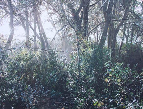 Sempre treballa a partir de fotografies i "nagafo trossos i els utilitzo com a referència". De fet, si sobserva un quadre de Surinyac a certa distància, fa la sensació que és una fotografia. Ramon Surinyac és de Manlleu però té lestudi al Cabrerès, don sorgeix la inspiració per als seus boscos. El manlleuenc ha quedat sorprès del fet que aquests paisatges forestals despertin reaccions a Alemanya "perquè tenen un imaginari de mitologies, elfs" i aquest tema "desperta inputs". Ho ha contraposa amb els paisatges marins que "a Osona crida més latenció". Diu que busca imatges molt plàstiques i acadèmiques però "quan hi entres veus que no és exactament això; que és només una excusa per fer una altra cosa".