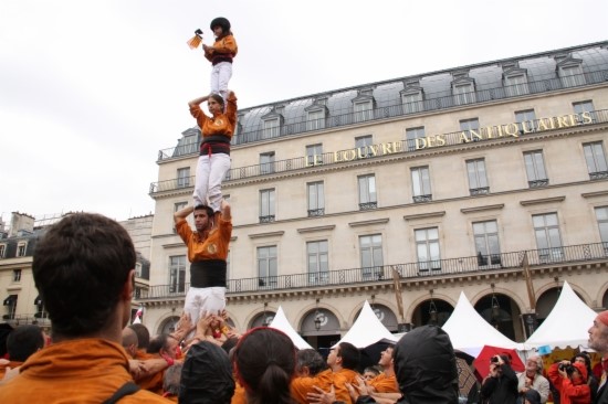 La colla Els Sagals d'Osona aixeca un pilar de dol en record de les víctimes de l'11 de Setembre, durant la Diada