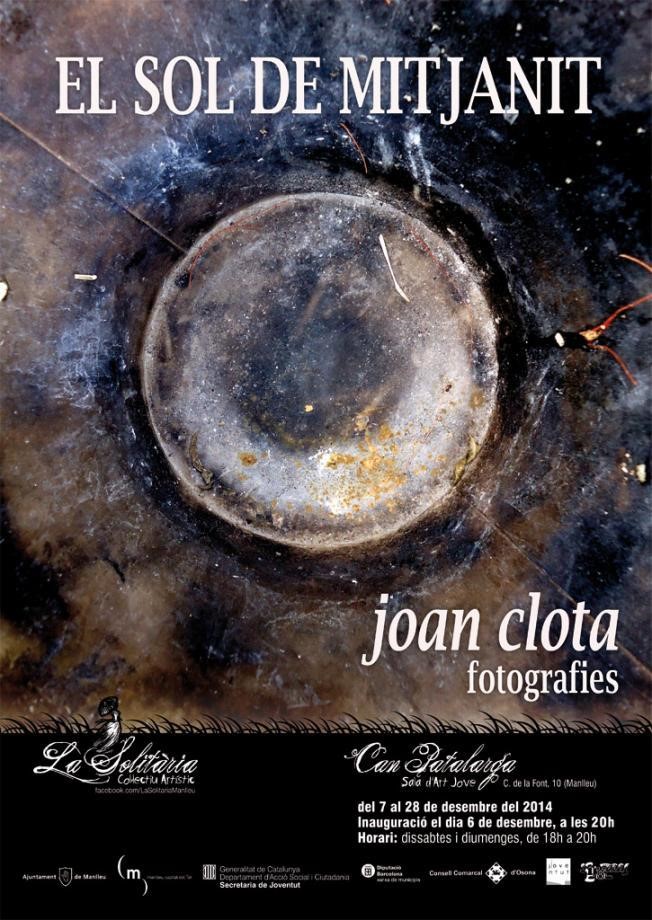Aquest cap de setmana el manlleuenc Joan Clota exposa a la sala de Can Patalarga la seva sèrie fotogràfica El Sol de Mitjanit. Es tracta duna mostra impulsada pel Col·lectiu dArtistes La Solitària. El mateix artista ha comentat que hi ha 17 fotografies i que són una mostra del treball que va començar "fa uns dos anys llargs".