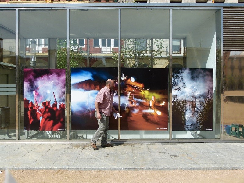 Les imatges estan repartides a les escales, a les entrades del pàrquing, aprofitant les superfícies de vidre i en espais que se serveixen del mobiliari urbà. El manlleuenc Xevi Vilaregut va explicar que ha escollit "una foto de cada any" i tant ell com Sergi Càmara van remarcar la importància de mostrar obres a lexterior. Per Càmara, "avui en dia és la manera de poder arribar a la gent" i en canvi és molt més "difícil" tenir projecció en una "sala tancada".