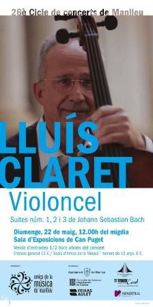 Lluís Claret tocarà diumenge 22 de maig a les 12 h, a la Sala d’exposicions de Can Puget. El prestigiós músic interpretarà les tres primeres Suites de Johann Sebastian Bach. Segons Pladelasala, Lluís Claret "és un músic consagrat i un dels noms que tothom voldria per programar en un cicle de música clàssica".