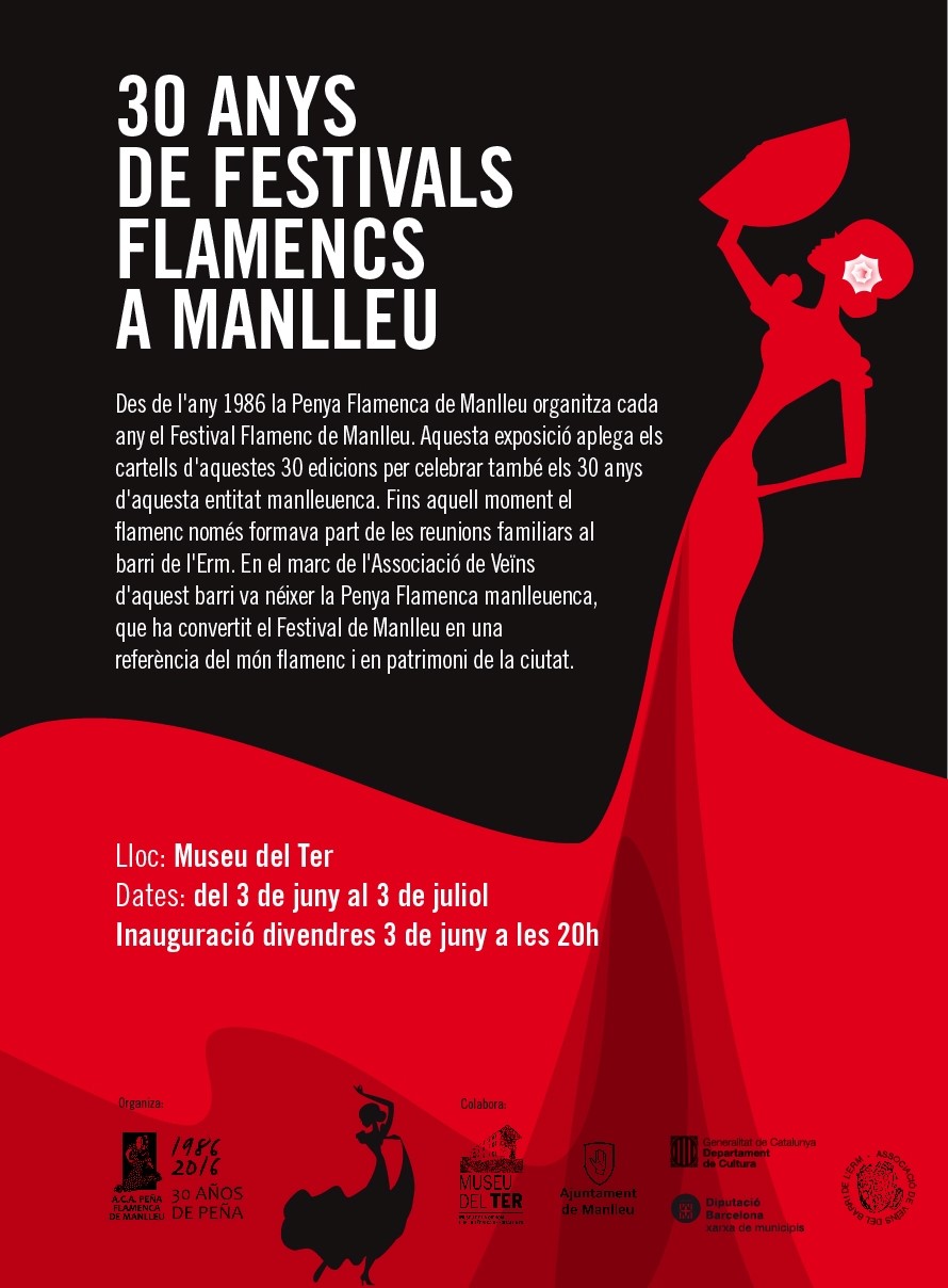 La Penya Flamenca de Manlleu inaugura aquest divendres al Museu del Ter una mostra dels 30 cartells dels festivals que ha organitzat a la ciutat, aprofitant que precisament se celebra el seu 30è aniversari.
