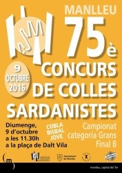 Aquest diumenge 9 d'octubre Manlleu acull el tradicional concurs de colles Sardanistes que aquest any arriba a la 75ena edició i ho fa amb diferents sorpreses que s’aniran revelant durant la vetllada. En total hi participaran 18 colles de la província de Barcelona, Girona i Lleida i aquest any com a característica hi ha colles de diferents categories.