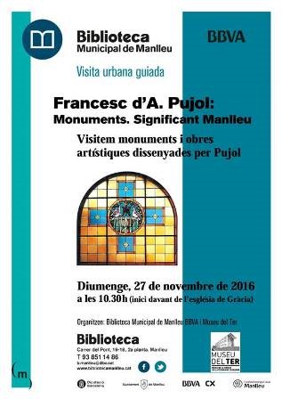 Aquest diumenge 27 de novembre la Biblioteca Municipal de Manlleu BBVA i el Museu del Ter organitzen la visita urbana guiada “Francesc d’A. Pujol. Monuments: significant Manlleu” en motiu de la commemoració del centenari del naixement del manlleuenc Francesc d’Assís Pujol.