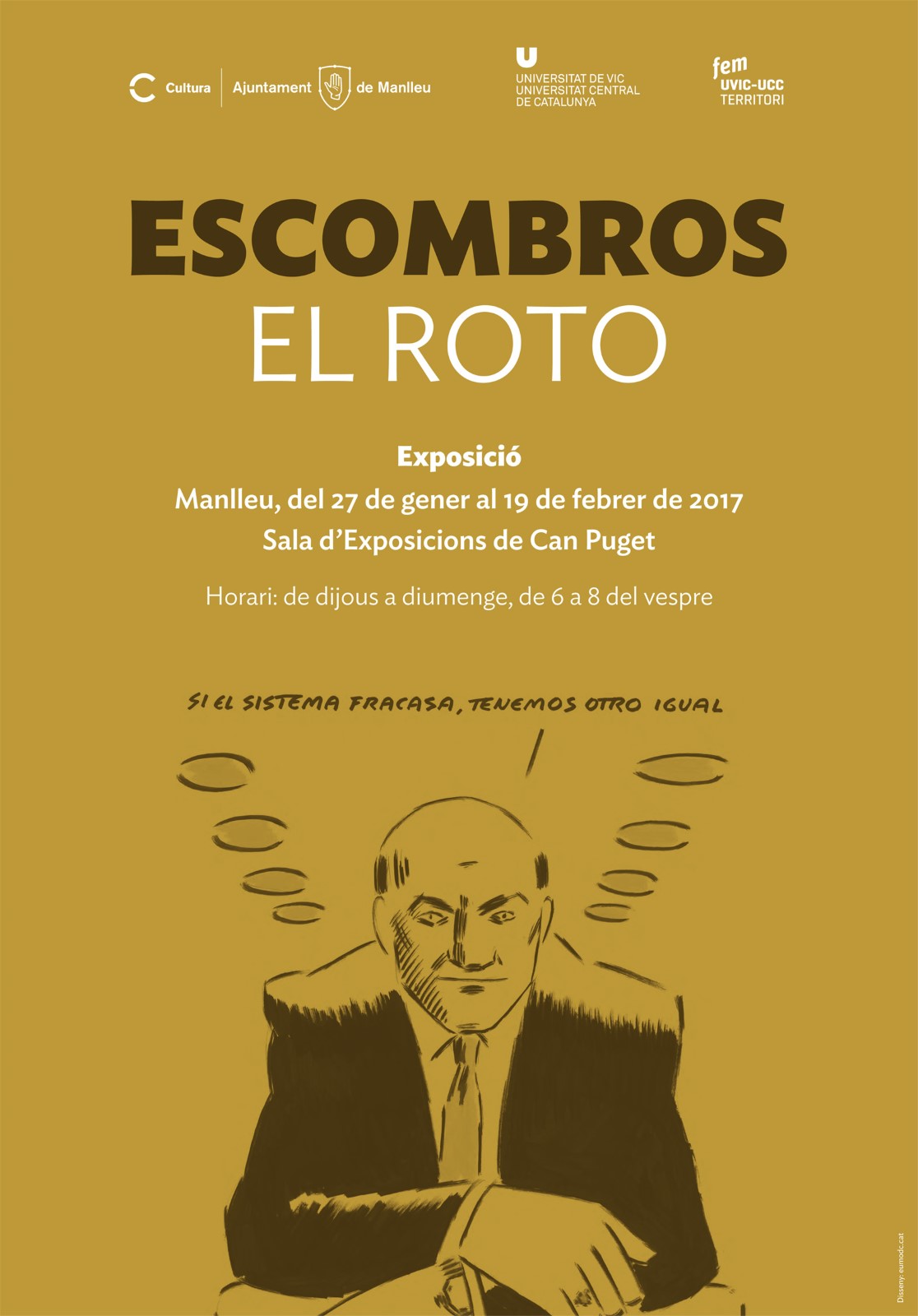 Els dibuixos d’El Roto s’han publicat en diaris com Diario16 o El Independiente i, des de fa anys, a El País. Ton Granero, responsable de Fem UVic-UCC Territori, explica que cada any la universitat agafa un tema transversal i organitza “conferències, pel·lícules o exposicions”. En aquesta ocasió, “el 2015 es va escollir la crisi” i primer la mostra “es va poder veure al Temple Romà”.