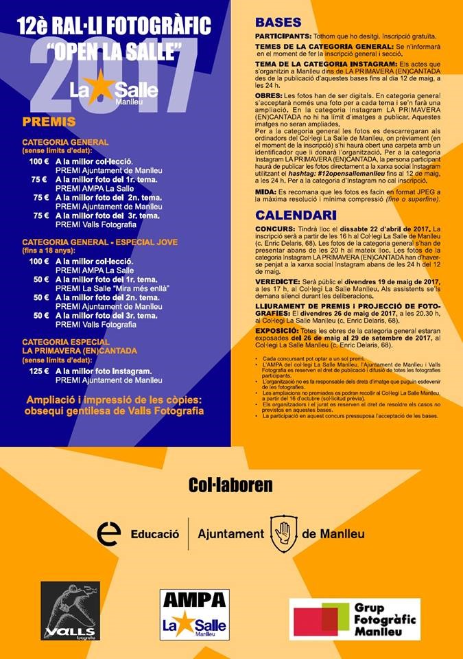 S’han obert ja el termini per poder participar al ral·li fotogràfic de La Salle, que es farà just abans de Sant Jordi, el 22 d’abril. És ja la dotzena edició i el concurs “ja té un cert bagatge”.
