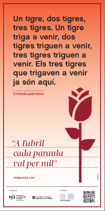 El Centre de Normalització Lingüística d’Osona ha presentat aquesta setmana la cinquena edició de la campanya “A l'abril cada paraula val per mil”. S’ha centrat en la part més lúdica del català, després que l’any passat estigués centrada en la literatura. Ara es donen a conèixer els embarbussaments i jocs de llengua. La directora del Consorci de Normalització Lingüística de Manlleu, Assumpta Grabolosa, ha explicat que aquí ja s’estan repartint cartells al centre. Tots els comerços que ho han volgut, han pogut exposar jocs de llengua i embarbussaments.