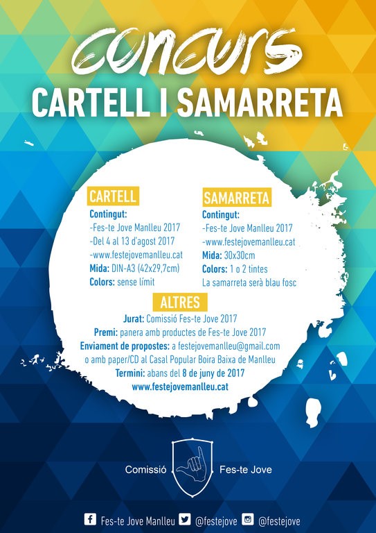 La Comissió Fes-te Jove de Manlleu ha obert el concurs de dissenys de cartell i samarreta de Fes-te Jove 2017. Aquesta comissió fa mesos que prepara la festa a través de diferents assemblees obertes.
