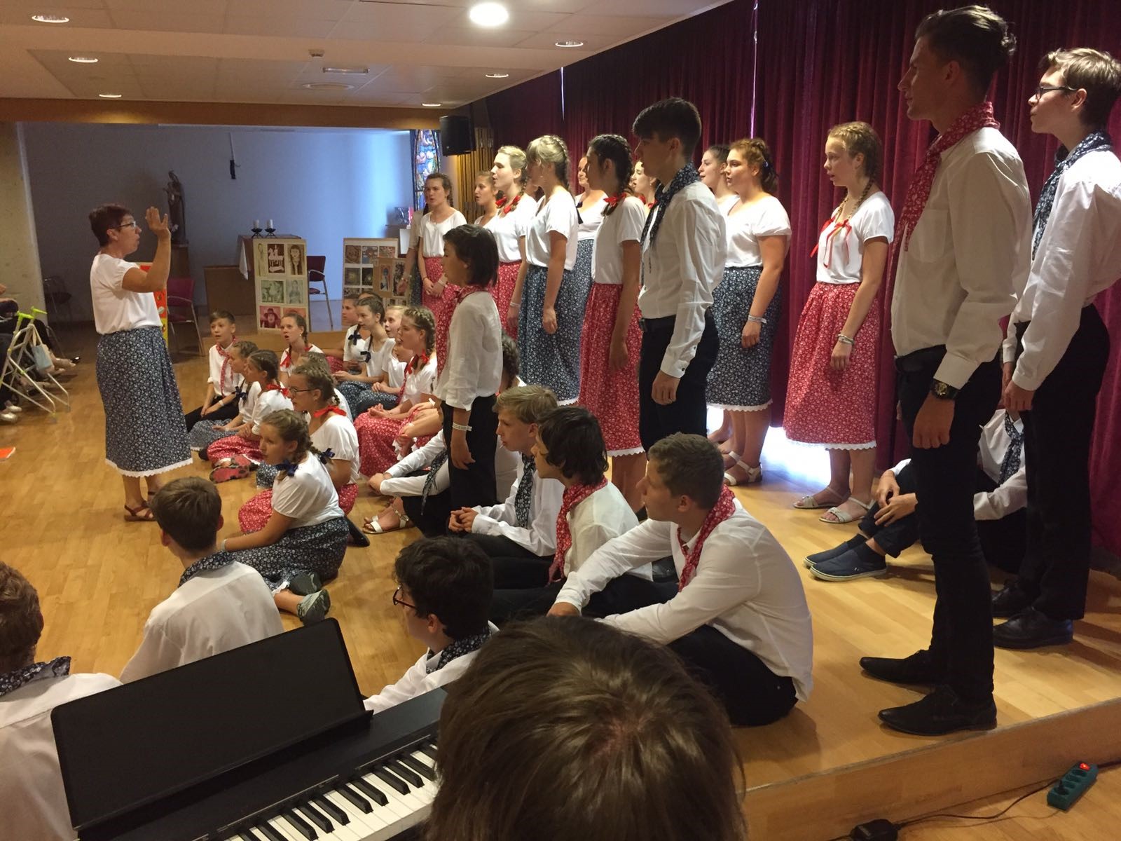 L’actuació va començar amb la interpretació del Cant dels Ocells i Rossinyol, seguida de cançons i balls més tradicionals. Al final, com a mostra d’agraïment per la tarda de música i germanor, els residents van cantar una sardana als nens i joves txecs.