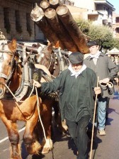 Un carruatge transportant enormes troncs