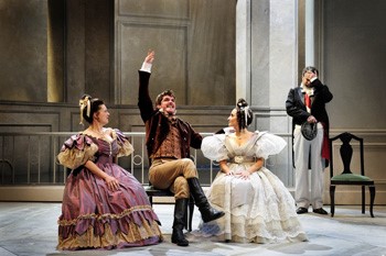 Villegas i Soler en escena, juntament amb les actrius Gemma Brió i Anna Güell. Foto: David Ruano/TNC