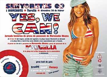 Com sempre, sha escollit una qüestió dactualitat per vincular-la a la festa. Lemblema de lany, que també inspira el cartell, és "Senyoretes i homenots: Yes, we can!" La sortida es farà a 2/4 de 10, a la plaça Joanot Martorell. La desfilada inclourà aquest any la presa de possessió de Morenacka Obama.