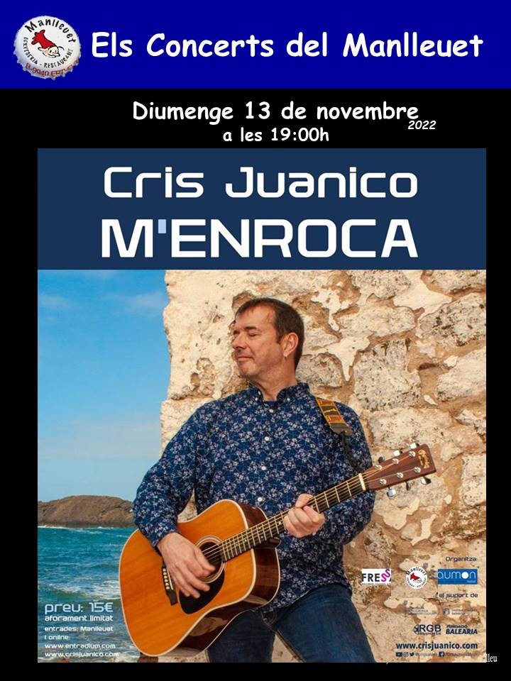 Finalment, el 13 de novembre hi haurà el concert del menorquí Cris Juanico, qui presentarà el seu EP anomenat “M’Enroca”.