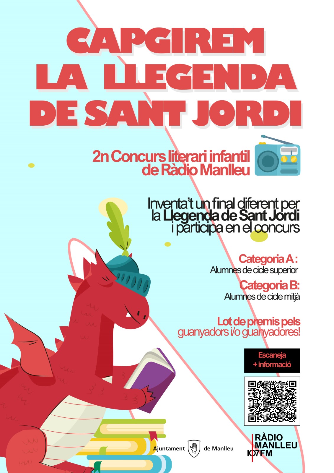 5. Els vencedors s’anunciaran el dijous 20 d’abril i l’entrega de premis es farà el diumenge 23 d’abril, durant el programa especial que farà Ràdio Manlleu amb motiu de Sant Jordi a la plaça Fra Bernadí.