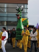 Imatge del drac d'Avinyó sortint del recinte firal el Sucre.
