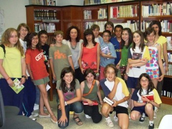 L'escritpora amb alguns dels nois i noies que van participar en el club de lectura