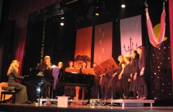 Totes les 12 cançons que formen part de l'espectacle estan recolzades amb una escenografia. Segons Anna Sanabra, directora del cor femení, el director escènic de lespectacle, Pep Simon, ha aconseguit crear uns detalls expressius per cada sentiment. A més, lescenografia es combina amb un important joc de llums i de formes.