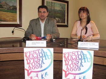 L'alcalde de Tona, Josep Salom, i la regidora de Cultura, Lurdes Boneu, en la presentació de la Festa Major