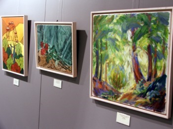 Alguns dels quadres exposats a la sala d'art de Caixa Manlleu a Vic