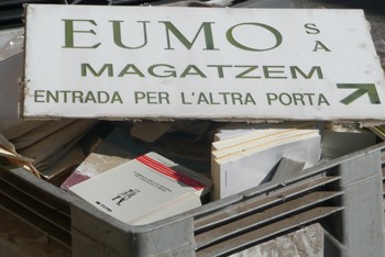 A principis d'any, Eumo ja havia externalitzat els serveis de logística i distribució. Pel magatzem de Mas Galí hi han passat els 1.500 títols que l'editorial ha publicat en aquests 30 anys, amb tiratges que podien anar des dels 500 fins als 200.000 exemplars que s'han venut del Primer Diccionari.