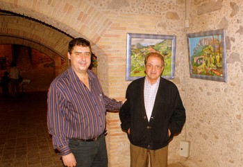 L'autor, Xavier Collelldemont, a l 'esquerra, acompanyat del també pintor Antonio Anglada