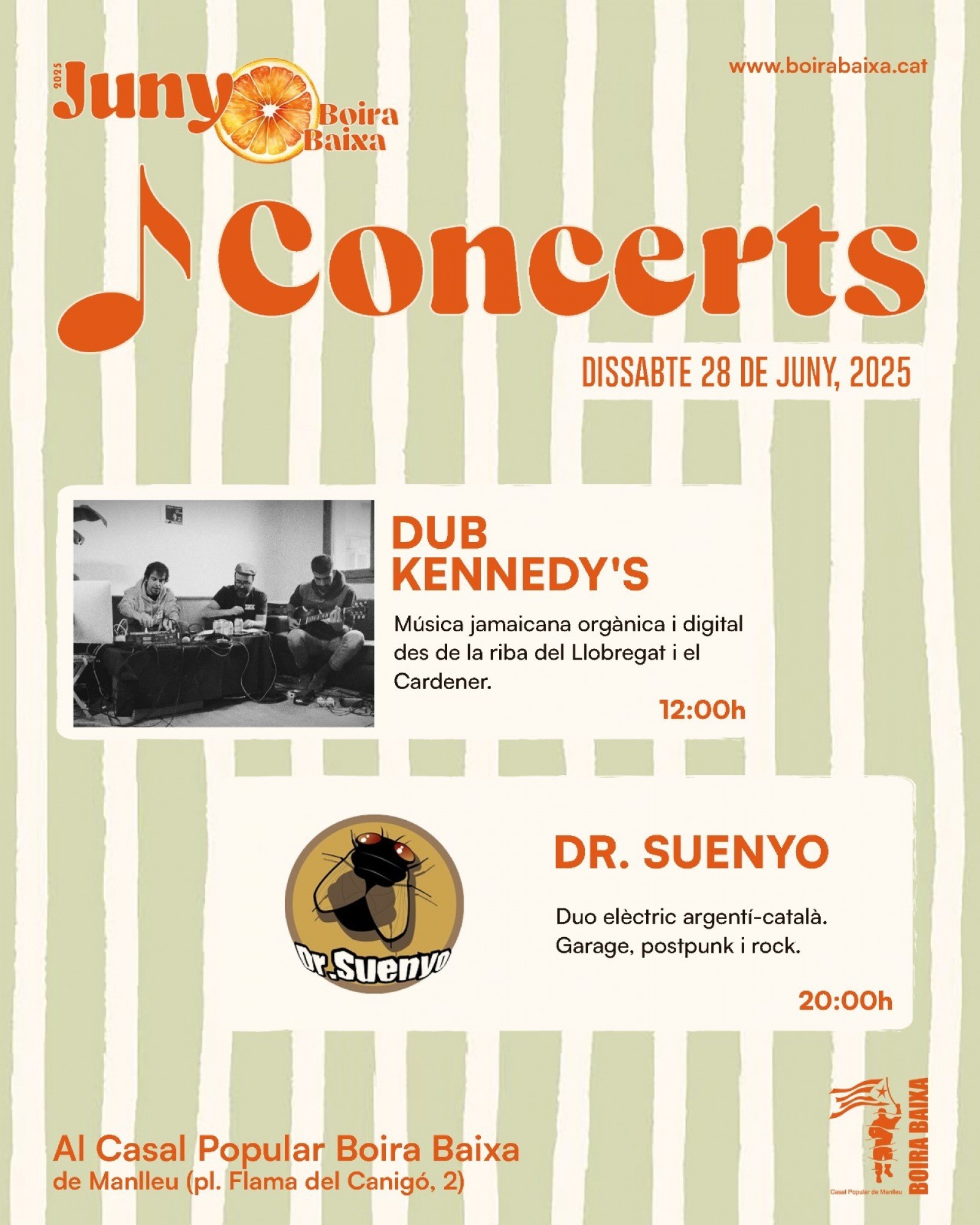 Dub Kennedy's, amb una proposta de música jamaicana orgànica i digital des de la riba del Llobregat i el Cardener. A les vuit del vespre s'ha programat el concert de