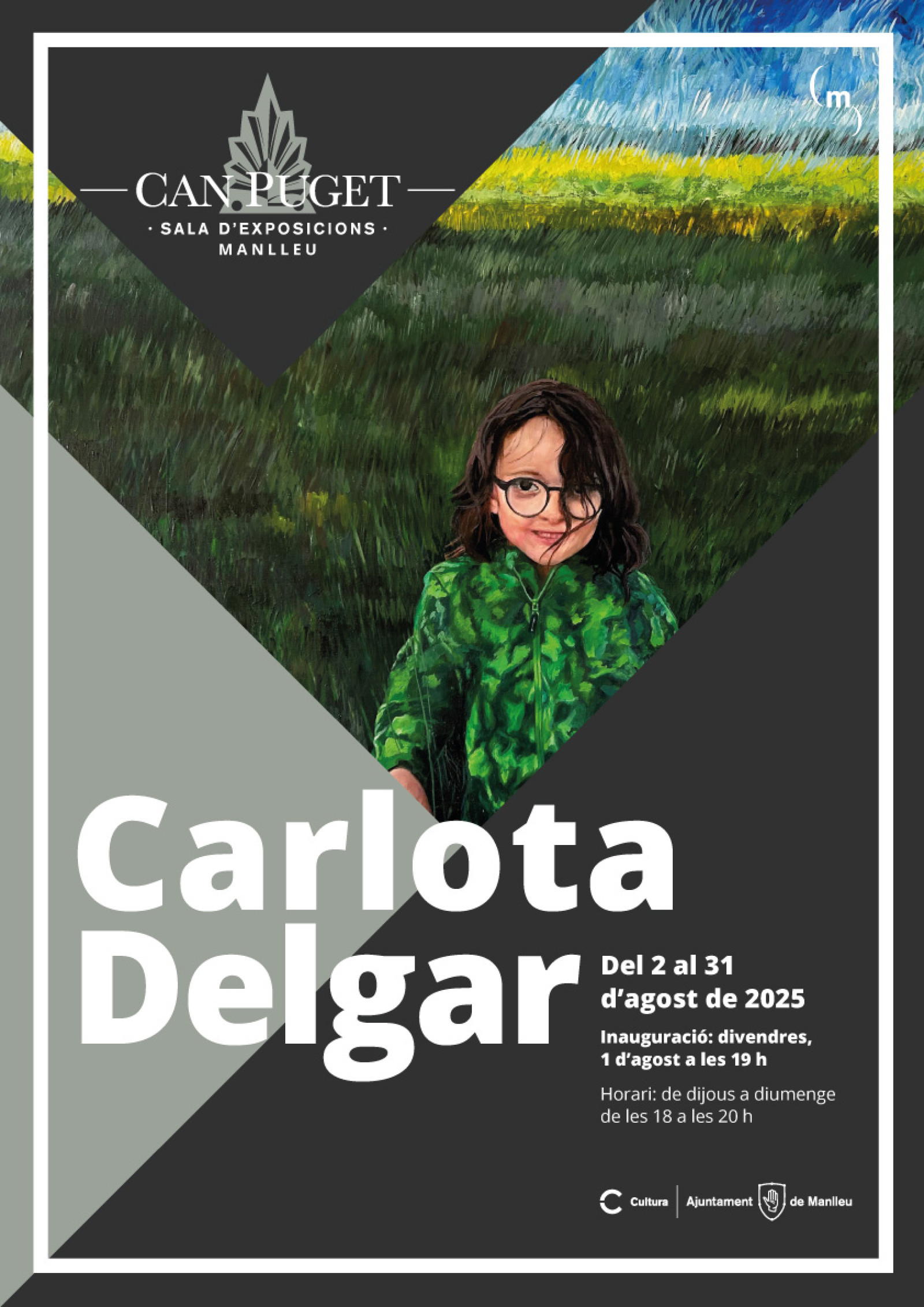 El divendres 1 d'agost a les set de la tarda, s'inaugurarà a la Sala d'exposicions de Can Puget la nova mostra d'art de la manlleuenca Carlota Delgar. L'artista, que ja va presentar a Manlleu les exposicions