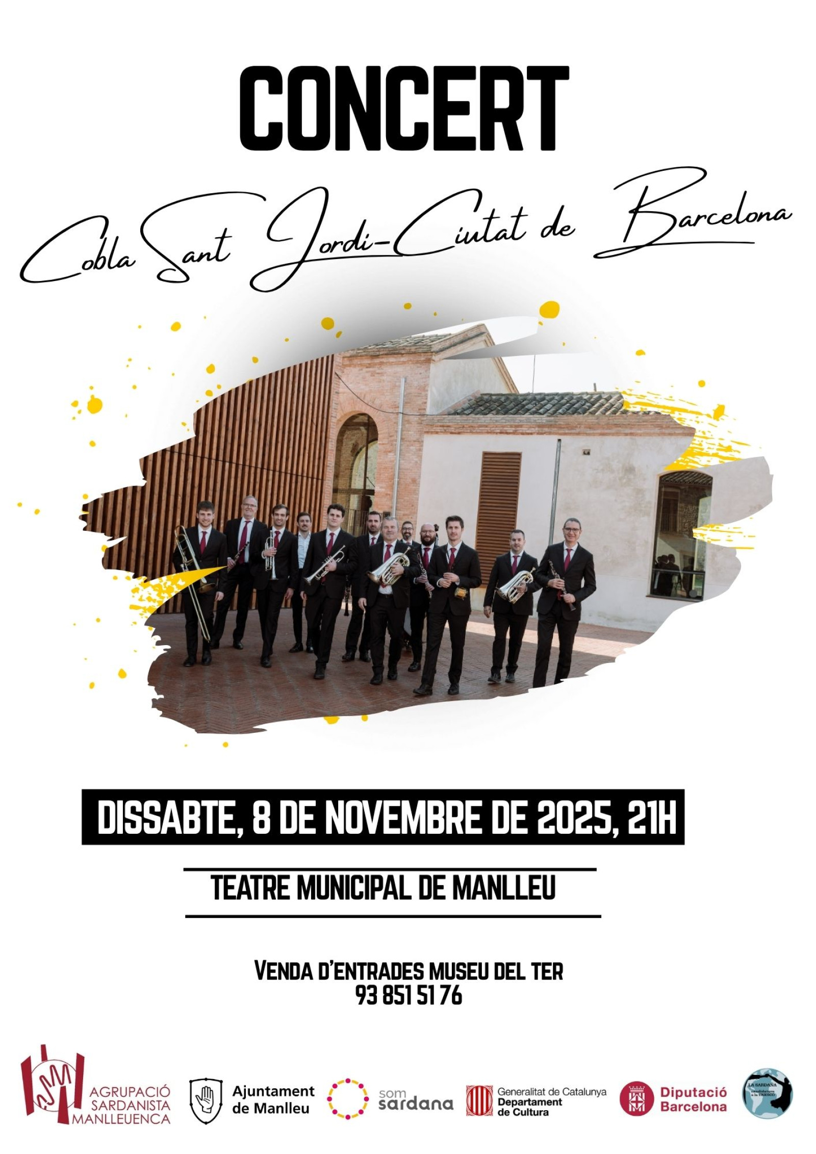 El Teatre Municipal de Manlleu acollirà el dissabte 8 de novembre, a les nou del vespre, el concert de la cobla Sant Jordi- Ciutat de Barcelona, dirigida per Miquel Massana, que servirà com a cloenda de la temporada sardanística.