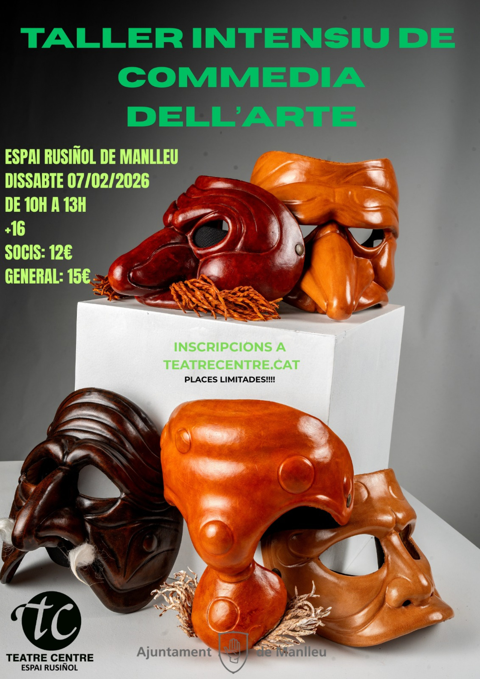 El dissabte 7 de febrer, l’Espai Rusiñol de Manlleu acollirà una jornada dedicada íntegrament a la comèdia de l'art. La iniciativa combina formació i exhibició escènica per apropar al públic un dels gèneres més emblemàtics del teatre popular europeu.