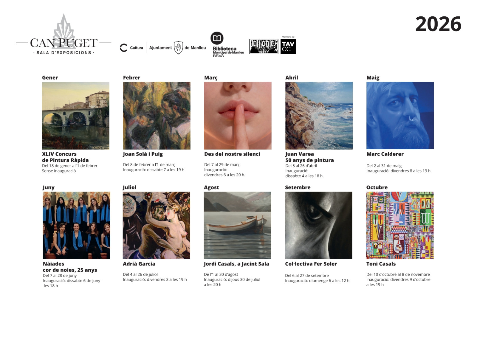 La programació de la sala s’estendrà fins al mes d’octubre, tancant la programació amb una mostra del manlleuenc Toni Casals. Al llarg del 2026, es podran veure: