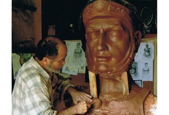 Gabí Boixader, un dels artesans que ha rebut el primer premi, esculpint amb fang o poliuretà una de les peces