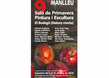 Aquest divendres a 2/4 de 9 del vespre, sinaugurarà a la sala dexposicions de Can Puget de Manlleu el 9è Saló de Primavera de Pintura i Escultura, que presenta obres de catorze artistes. La mostra es podrà visitar del 5 al 27 de juny, en lhorari de dijous a diumenge de 6 a 8 del vespre.
