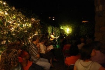 El públic amb una copa de vi a la mà, a la fresca amb un cel ple destrelles, i en un espai amb llums i vaixells amb poemes, va viure la primera edició denguany de "Vespres a leixida" a la Casa Museu Verdaguer.